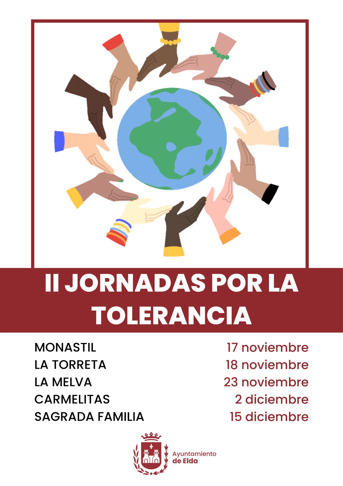 Por su parte, Javier Rivera ha indicado que “desde la Concejalía de Participación Ciudadana trabajamos en campañas de concienciación como eje fundamental de nuestra labor. En este caso, estamos aquí para apoyar a la Concejalía de Educación y a la comunidad educativa eldense en las II Jornadas Por la Tolerancia de Elda”.