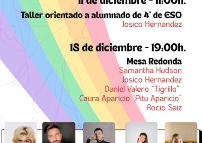 La primera de las actividades tendrá lugar el 11 de diciembre en los Salones Princesa y consistirá en un taller dirigido al alumnado de 4º de ESO. Este taller será impartido por José Hernández, técnico de intervención social, promotor de igualdad y conocido en redes como Josico Hernández. José ofrecerá un enfoque interseccional, fundamental para entender cómo distintas realidades y desigualdades se cruzan y afectan al día a día de la juventud.