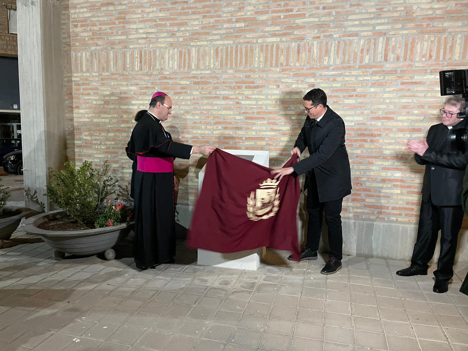 El obispo de la diócesis Orihuela-Alicante, José Ignacio Munilla, y el alcalde de Elda, Rubén Alfaro, visitan las obras realizadas por el Consistorio eldense para la mejora de la accesibilidad en los alrededores del templo así como el aparcamiento público y el bulevar peatonal construido frente al acceso principal
