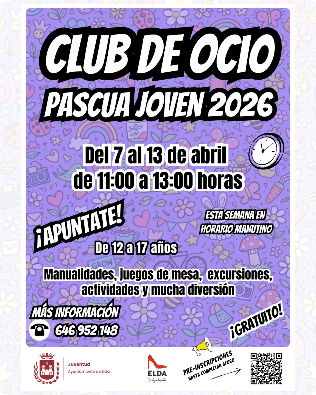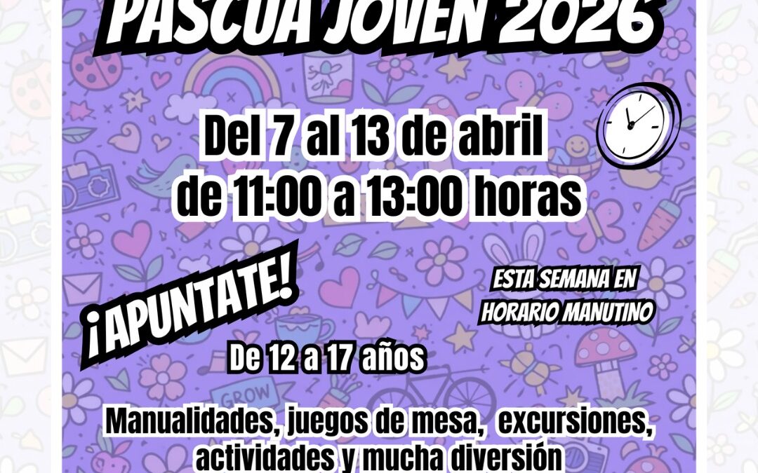 El Ayuntamiento de Elda, a través de la Concejalía de Juventud, organiza el Club de Ocio ‘Pascua Joven 2026’, una iniciativa destinada a chicos y chicas de entre 12 y 17 años que se desarrollará en el Centro Cívico y Juvenil del 7 al 13 de abril.