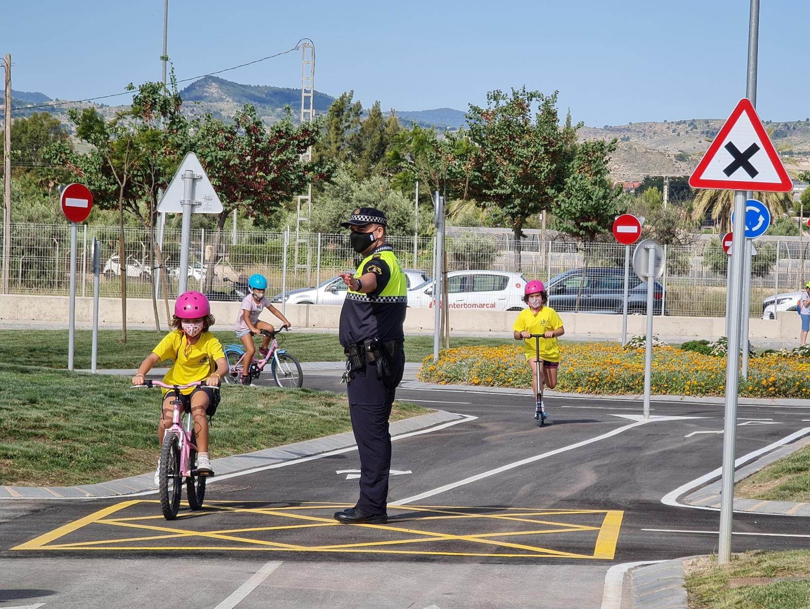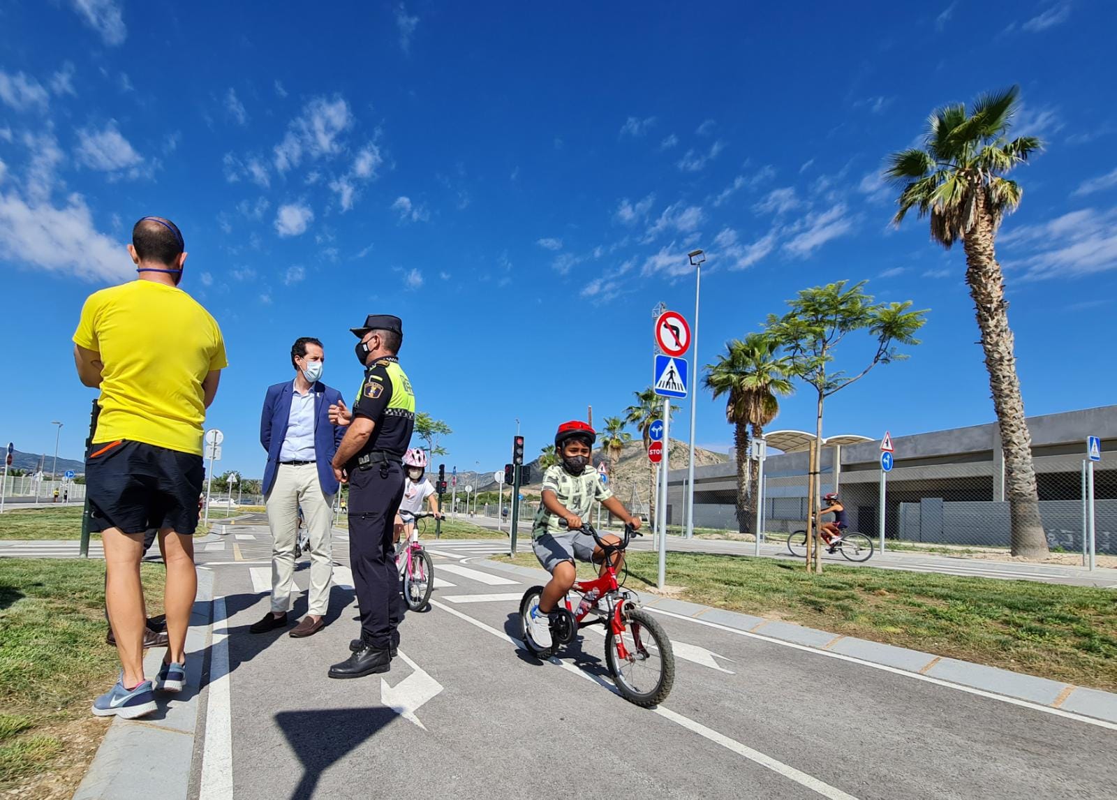 Alumnos y alumnas de 3º de Primaria del C.P. Pintor Sorolla han sido los primeros que han circulado por las ‘calles’ del Parque Infantil de Tráfico de Elda. “Estas instalaciones son como una ciudad en pequeño, con calles, cruces, rotondas, señalización vertical y horizontal, pasos de peatones… Es decir, los escolares de nuestra ciudad se van a encontrar aquí todo lo que se encontrarán dentro de unos años cuando circulen por la vía pública”, ha explicado Alfaro.