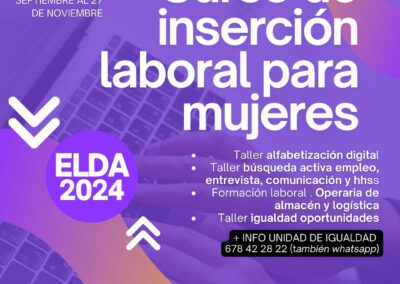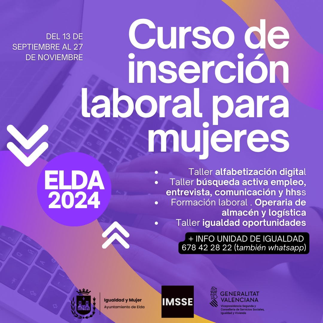 El Ayuntamiento de Elda, a través de la Unidad de Igualdad, pone en marcha una nueva edición del programa formativo para facilitar la inserción laboral a mujeres eldenses. El ciclo formativo dará comienzo el 13 de septiembre y finalizará el 27 de noviembre y se desarrollará en la Sede de la UNED.