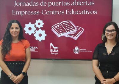 El Ayuntamiento de Elda, a través de la Concejalía de Fomento Económico, Industria y Empleo, y en colaboración con la Concejalía de Educación, ha puesto en marcha un programa de jornadas de puertas abiertas en el que participan empresas y centros educativos de la ciudad. Las concejalas de ambas áreas, Elizabeth Belda y María Gisbert, han presentado esta iniciativa que se organiza por primera vez.