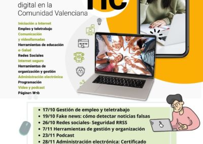 Estos cursos van dirigidos a toda la población, sin embargo hay programaciones que están más enfocadas a un colectivo en concreto, como el plan Conectados que está enfocado a personas mayores de 55 años. Está formado por dos cursos de dos horas cada uno, el primero de ellos incluye formación para ocio y entretenimiento online: videollamadas, tv online, libros y periódicos digitales (2 horas), es decir, para facilitar el acceso a la información y a la cultura a las personas mayores, mientras que el segundo va dirigido a enseñar a realizar trámites y gestiones online: cita médica, certificado digital, trámites bancarios, etc (2 horas).
