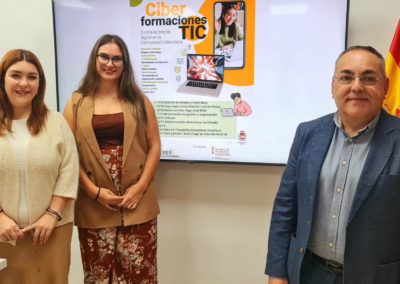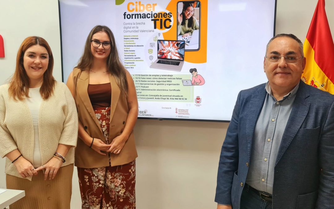 Las concejalas de Juventud, Anabel García, y de Educación, María Gisbert, y el edil de Brecha Digital, Enrique Quílez, han dado a conocer una iniciativa que se enmarca en el convenio firmado con Cibervoluntarios, «una ONG española de referencia internacional centrada en impulsar una transición digital inclusiva y eliminar la brecha digital. Facilitan formación gratuita en competencias digitales, promueven la innovación social y el empoderamiento de la ciudadanía gracias al uso de la tecnología«, ha explicado Anabel García.
