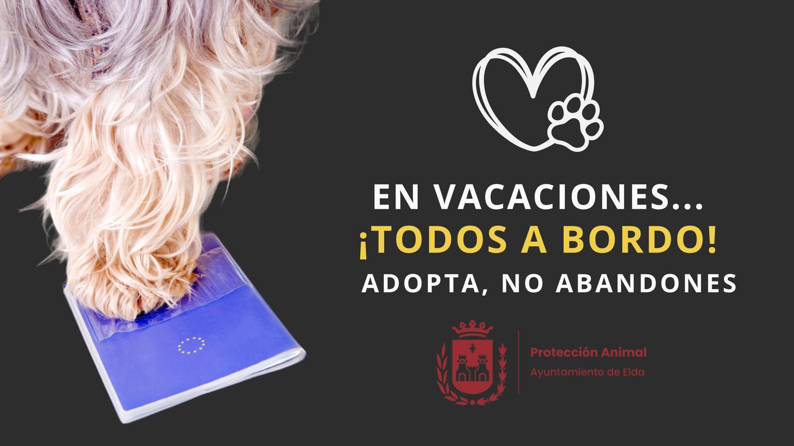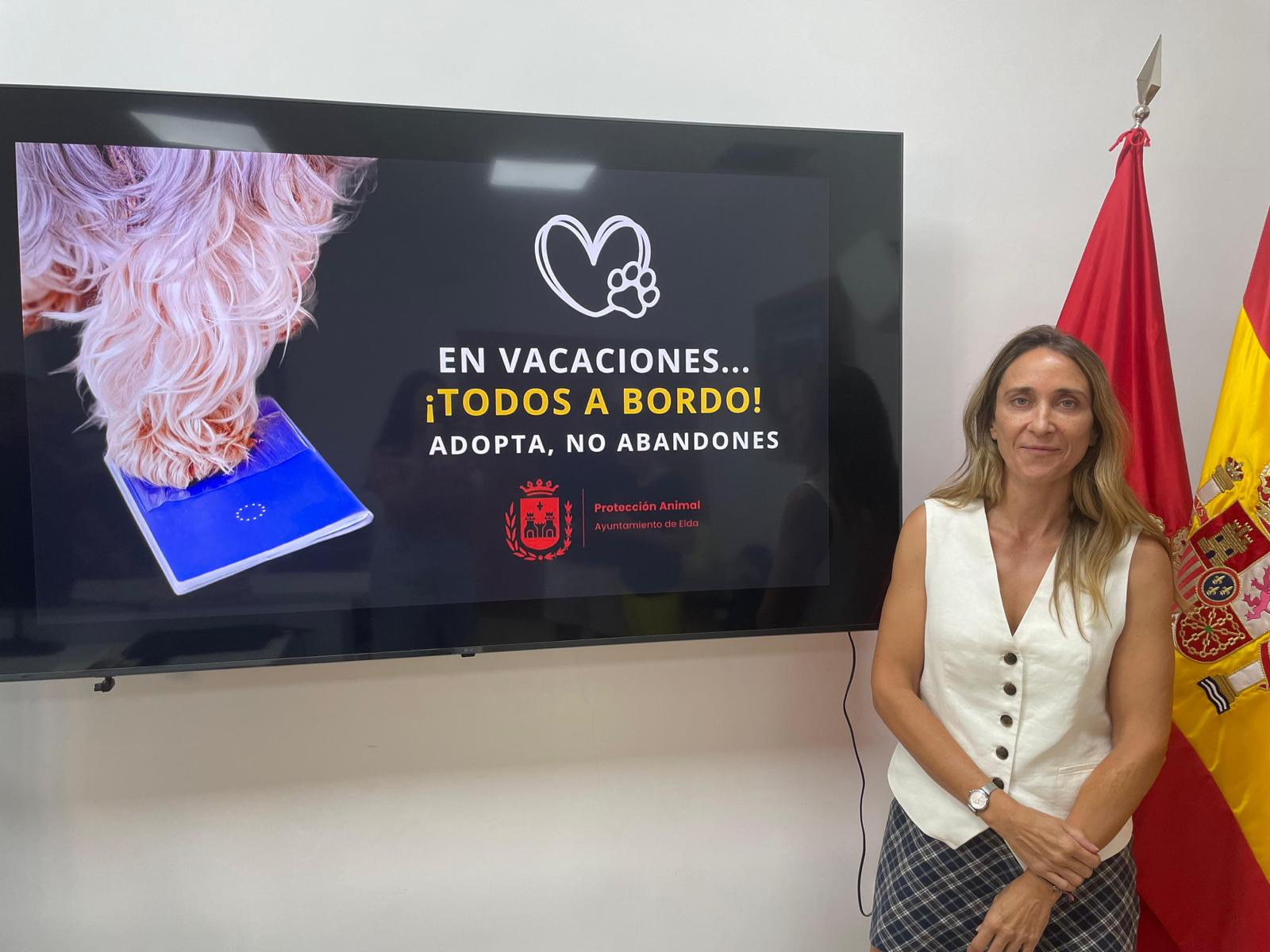 El Ayuntamiento de Elda, a través de la Concejalía de Protección Animal, ha presentado esta mañana la campaña contra el abandono animal ‘En vacaciones, ¡todos a bordo!’, con el objetivo de concienciar a la población sobre la responsabilidad que conlleva tener una mascota y así dejar claro que el abandono no es una opción, sobre todo en la época estival, cuando las familias se van de vacaciones y es más frecuente encontrar animales abandonados.