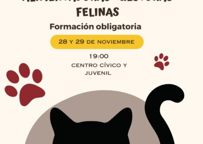 La edil de Protección Animal ha recordado que “las colonias se controlan gracias al trabajo compartido y la unión de los recursos públicos y la participación voluntaria de los ciudadanos y ciudadanas implicadas en el cuidado y alimentación de los gatos. Sin embargo, para que este trabajo sea eficaz es necesario que todos los actores implicados posean los conocimientos necesarios para una buena labor”.