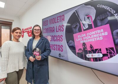 Los establecimientos comerciales que colaboren con este programa recibirán una tarjeta con todos los recursos y contactos a los que pueden dirigirse y también facilitárselos a las personas que lo necesiten. «Los comercios se comprometen a ofrecer esta información, creando una red violeta de compromiso de toda la ciudadanía eldense. Hace unas semanas terminamos la formación a los locales de ocio para afrontar este tipo de situaciones», ha explicado María Gisbert.