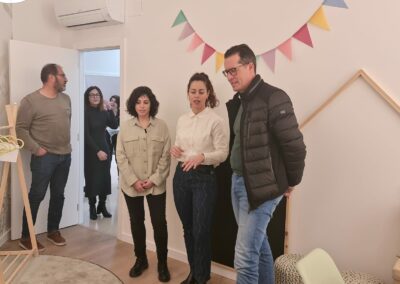 El alcalde de Elda, Rubén Alfaro, acompañado del edil de Bienestar Social, David Guardiola, de la directora del IMSSE, Marian Sánchez, además de las profesionales que atienden a los menores, ha visitado esta mañana las nuevas instalaciones y ha explicado que «esta reforma se ha realizado por las propias necesidades del IMSSE provocadas por la ampliación de servicios que ofrece y que cada vez son más especializados y específicos».
