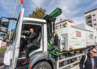 Rubén Alfaro ha destacado que «hoy presentamos un proyecto que supone un salto cualitativo en materia de gestión de residuos y modernización de servicios públicos». «Con esta nueva contrata», ha continuado el regidor eldense, «reafirmamos nuestro compromiso con una Elda verde y sostenible, poniendo a disposición de los vecinos y vecinas la maquinaria más eficiente y respetuosa con el medio ambiente para mejorar su día a día».