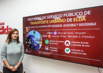 El Ayuntamiento de Elda ha presentado hoy el nuevo Proyecto de Servicio Público de Transporte Urbano, una iniciativa diseñada para adaptar la red a las necesidades actuales de la ciudadanía. El documento, que ha sido presentado esta mañana por la concejala de Movilidad Sostenible, Silvia Ibáñez, será llevado al próximo Pleno Municipal para su aprobación, marcando un paso decisivo hacia una movilidad más eficiente, inclusiva y sostenible.