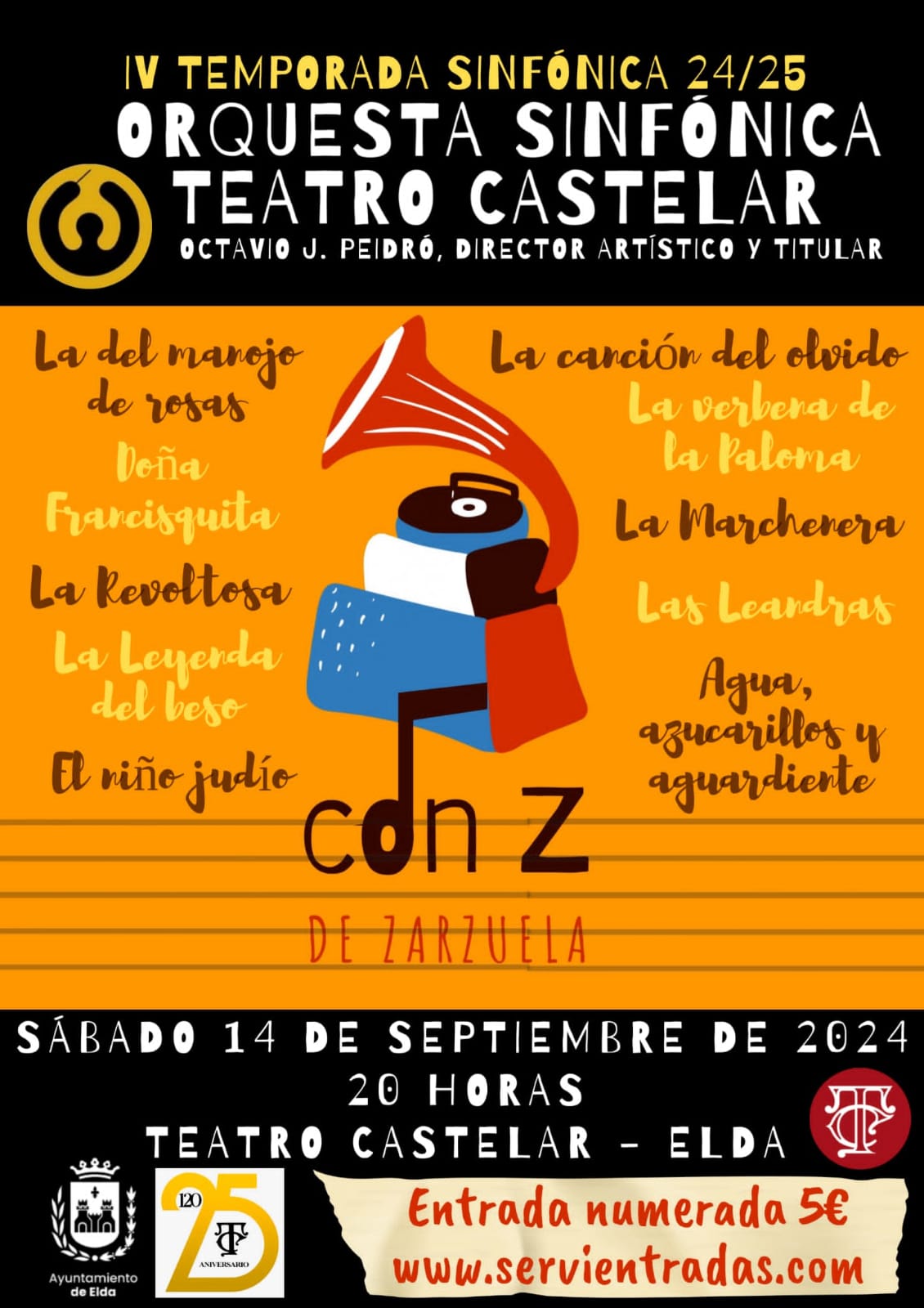 El Ayuntamiento de Elda, a través de las concejalías de Cultura y Teatro, ha presentado el primer concierto de la IV temporada de la Orquesta Sinfónica del Teatro Castelar con el título “con Z de Zarzuela”.