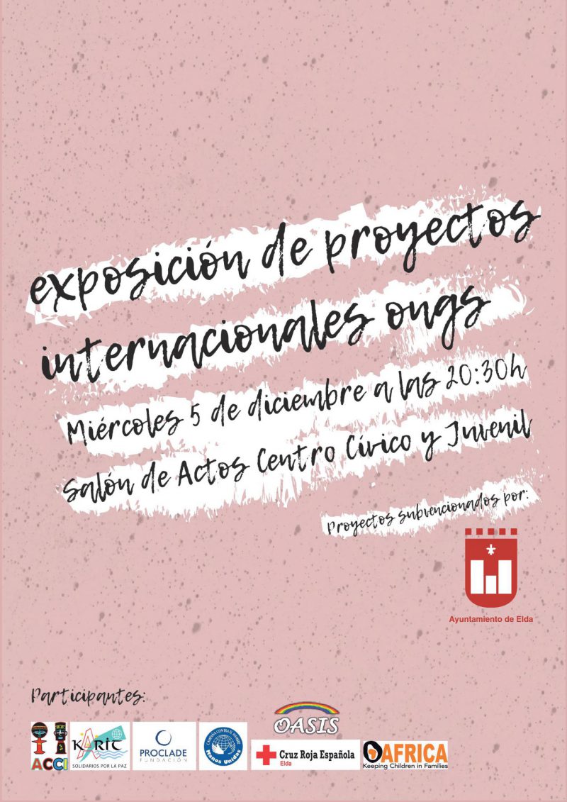 El Ayuntamiento de Elda, desde la concejalía de Solidaridad, ha anunciado que el próximo miércoles, 5 de diciembre, el salón de actos del Centro Cívico y Juvenil acogerá un acto dedicado a proyectos de cooperación internacional.