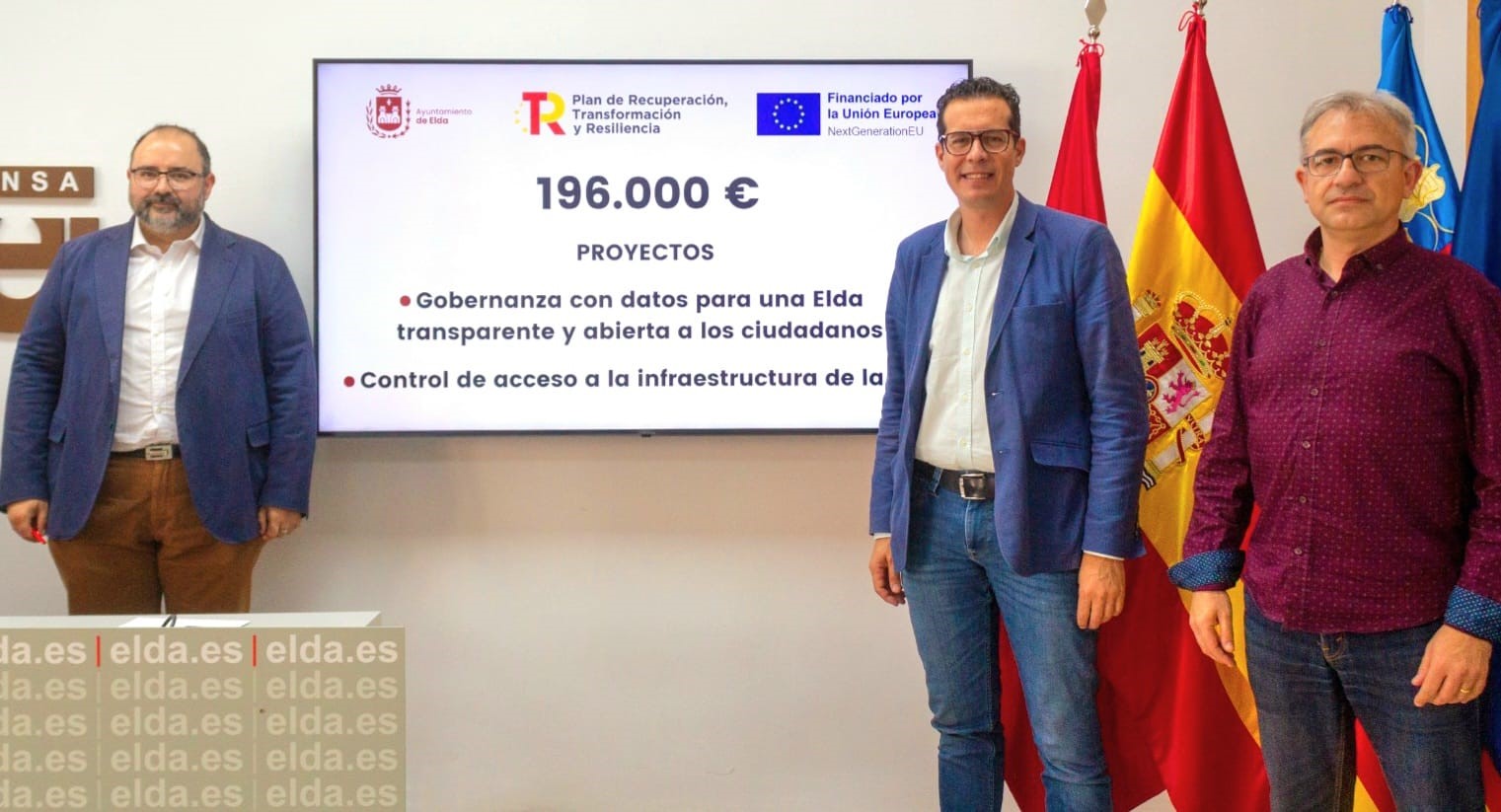 Alfaro, que ha estado acompañado por el concejal de Modernización, Jesús Sellés, y el director del Área de Gerencia, Aniceto Pérez, ha destacado que “Elda es una de las 8 ciudades alicantinas incluidas en este paquete de subvenciones, siendo el resto Benidorm, Alicante, Alcoy, Elche, Orihuela, San Vicente y Torrevieja. En el caso de Elda, la subvención asciende a 196.000 euros y se destinará a dos proyectos: mejorar la gobernanza con datos que permitir conseguir una gestión eficaz para la construcción de una Elda inteligente y abierta a los ciudadanos (136.629 euros) y mejorar el control de acceso a la red para garantizar la seguridad de toda la infraestructura en la transmisión y gestión de los datos (59.816 euros)”.