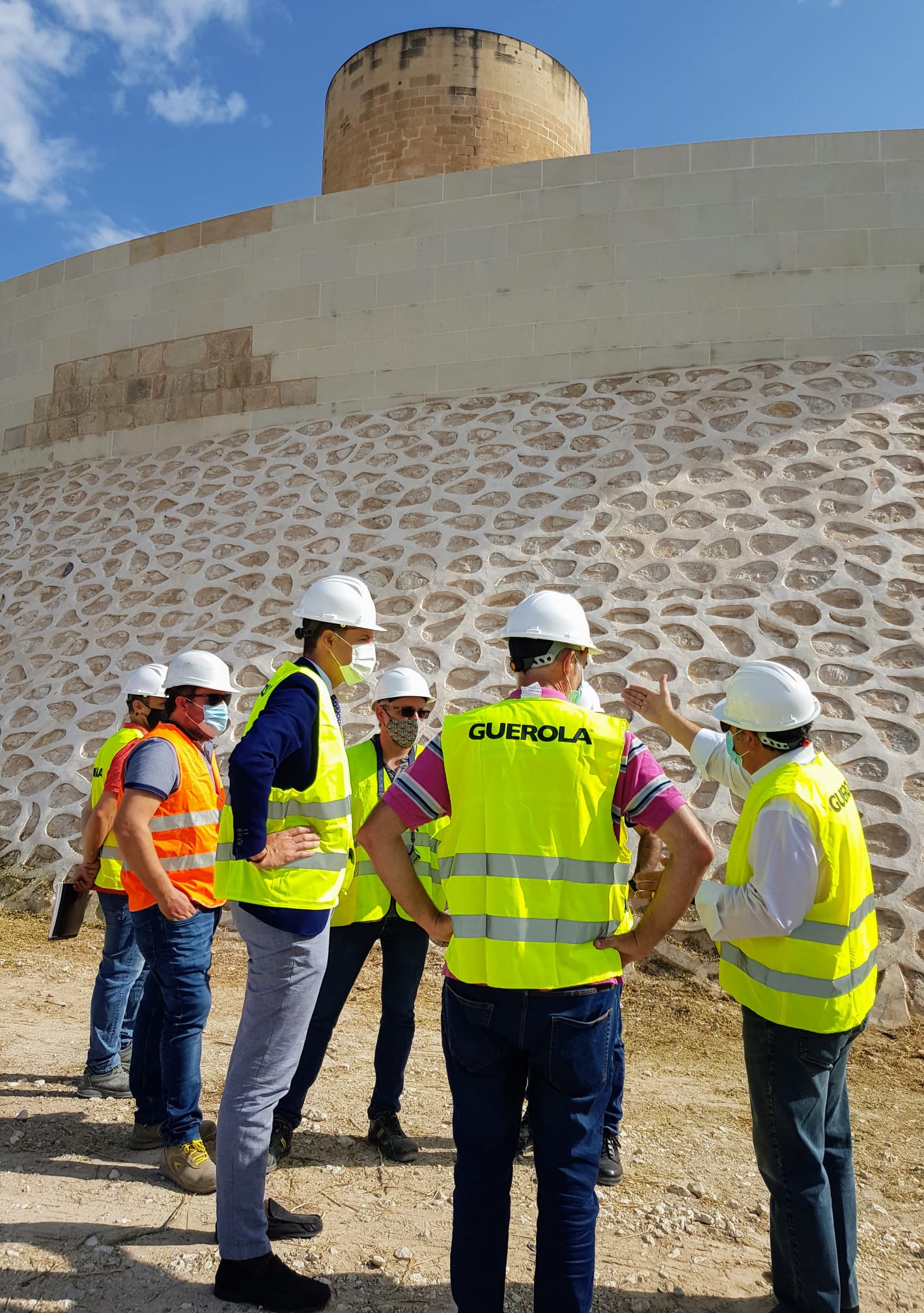 El alcalde Rubén Alfaro, acompañado del concejal de Patrimonio Histórico, Amado Navalón, y del arqueólogo municipal, Juan Carlos Márquez, ha visitado esta mañana el recinto para comprobar la evolución de unos trabajos que consisten fundamentalmente en “el tratamiento de la piedra para darle un aspecto envejecido, así como la recuperación de piezas de sillería y la limpieza y movimiento de tierras”.
