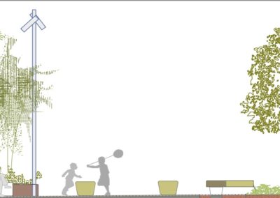 centro de la plaza que aportará sombra a todo el entorno, y se configurará