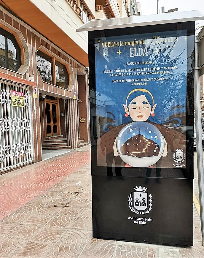La actuación, incluida en el Plan Elda Renace, se enmarca en el proceso de modernización de la señalización vertical y mobiliario urbano publicitario e informativo de la ciudad