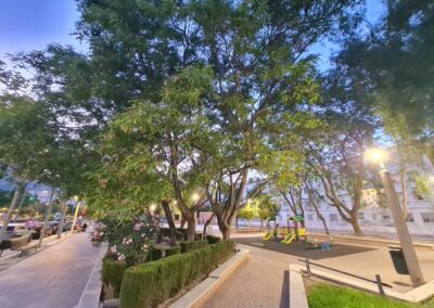 La Concejalía de Espacio Público del Ayuntamiento de Elda ha procedido a la renovación del alumbrado público del parque junto al Centro Social Severo Ochoa, donde se encuentran las oficinas del Instituto Municipal de Servicios Sociales de Elda (IMSSE).