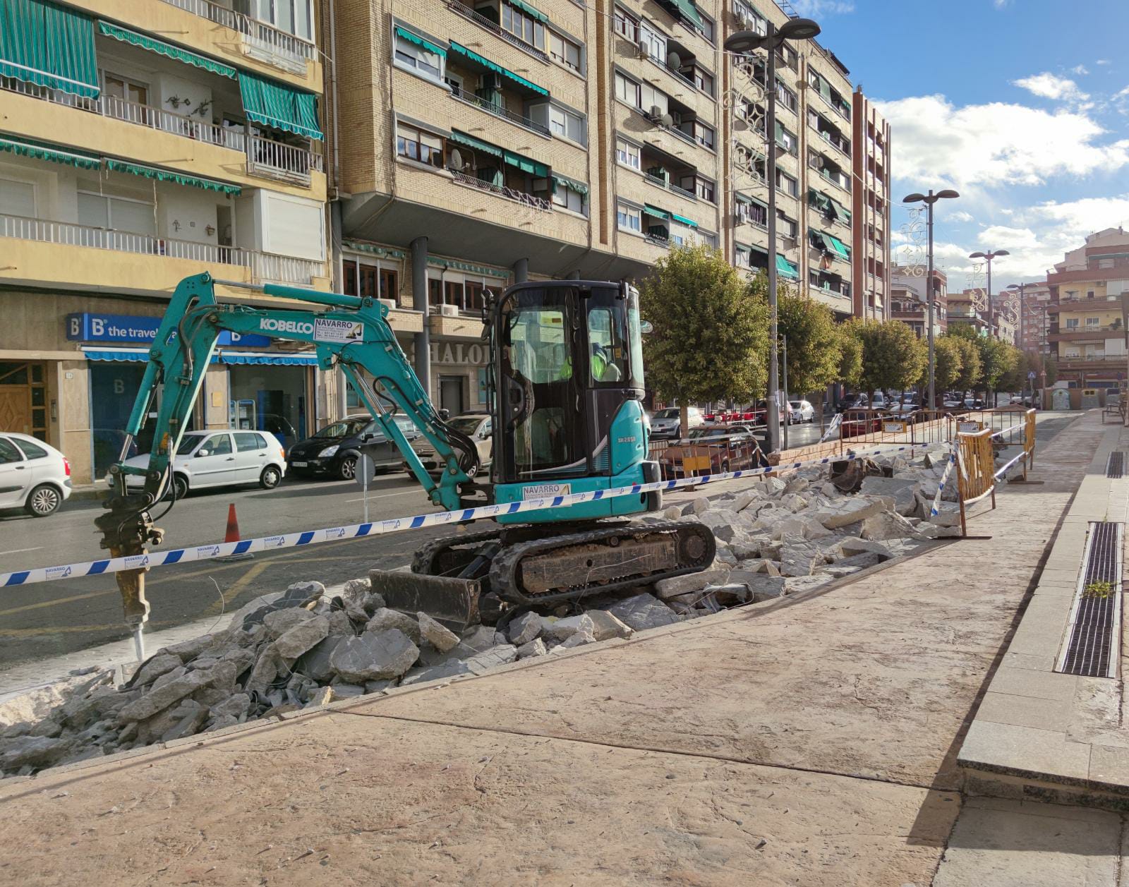 Los trabajos consisten en retirar el pavimento existente, reparar la tela asfáltica e implantar una capa de hormigón impreso acabado en relieve de modelo de adoquín
