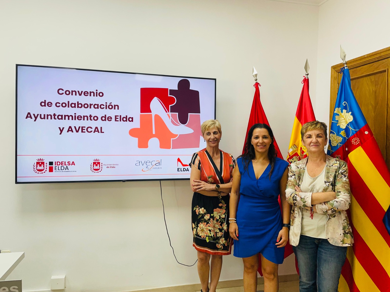 El Ayuntamiento de Elda, a través de Idelsa, renovará un año más el convenio de colaboración con la Asociación Valenciana de Empresarios del Calzado (AVECAL). Así lo ha anunciado esta mañana la concejala de Fomento Económico, Industria y Empleo, Elizabeth Belda, en una comparecencia en la que ha estado acompañada por la presidenta de AVECAL, Marián Cano, y la responsable de Formación y Recursos Humanos de AVECAL, María Ángeles López Rico.