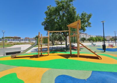 Este nuevo juego infantil también está fabricado en madera para mantener la concordancia y la estética de los juegos instalados en esta zona del Sector 9 y cuenta con renovados sistemas de seguridad que permiten desarrollar los momentos de juego con plenas garantías.