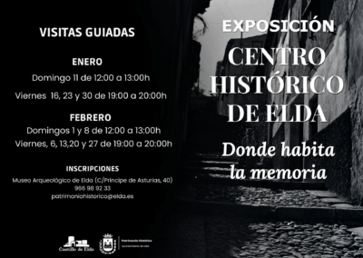 El Ayuntamiento de Elda, a través de la Concejalía Patrimonio Histórico, vuelve a poner en marcha el programa de visitas guiadas a la exposición “Centro Histórico de Elda. Donde habita la memoria”, una muestra que invita a recorrer la historia, la identidad y la evolución del casco antiguo de la ciudad que se encuentra en el Museo Arqueológico de Elda.