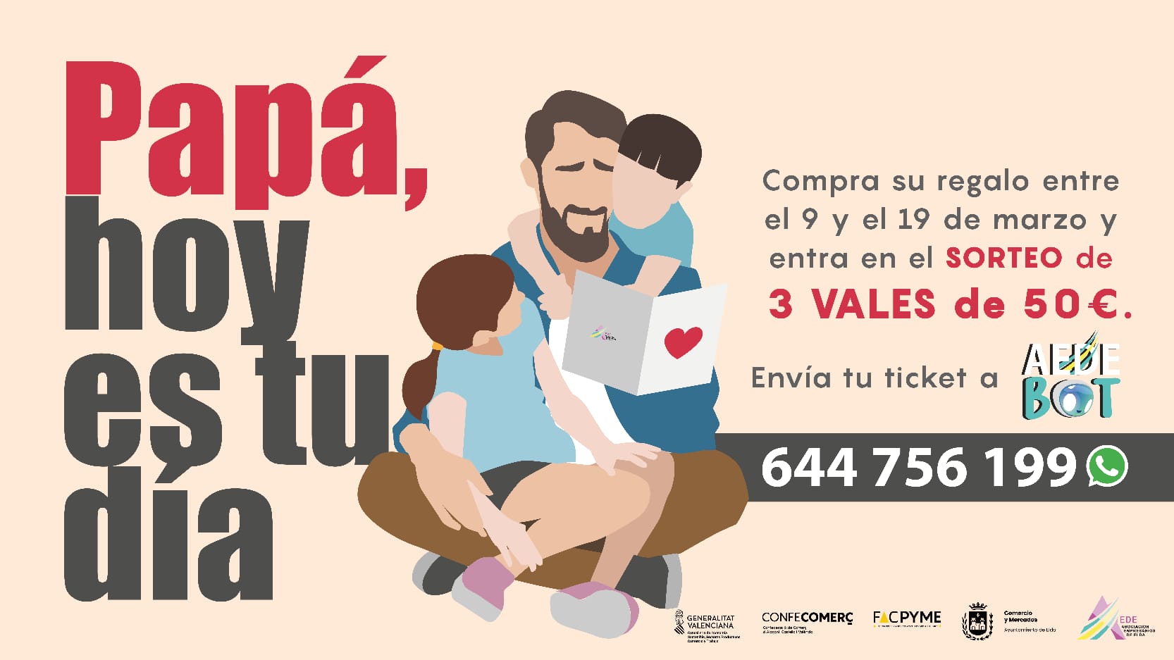 Los establecimientos adscritos a la Asociación de Empresarios de Elda participan en una iniciativa que, bajo el lema ‘Papá, hoy es tu día’, sorteará tres vales de compra entre sus clientes