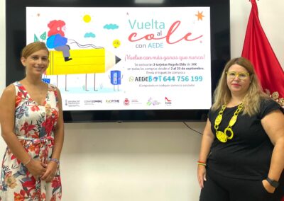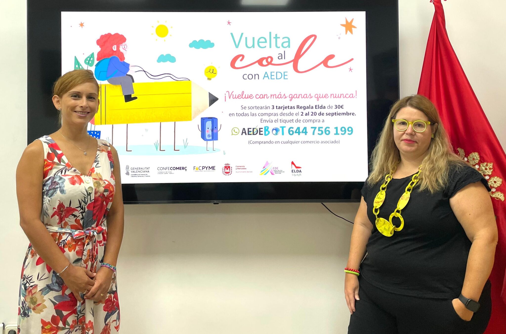 La concejala de Comercio y Mercados, Silvia Ibáñez, y la presidenta de la Asociación de Empresarios de Elda (AEDE), Rocío Vera, han presentado esta mañana una nueva edición de la campaña ‘Vuelta al cole’. Silvia Ibáñez ha afirmado que el objetivo de la misma es «apostar por el comercio local y de proximidad«, al tiempo que ha anunciado que «a lo largo del próximo cuatrimestre vamos a llevar a cabo iniciativas muy interesantes».