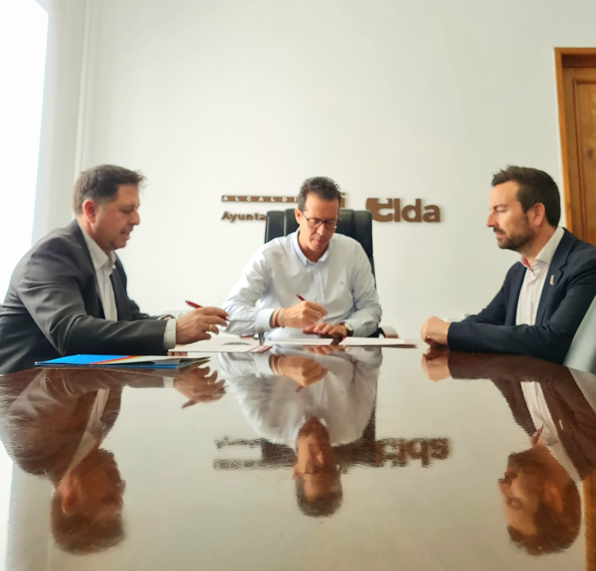 El Ayuntamiento de Elda y el CEU Cardenal Herrera de Elche han firmado un convenio de colaboración dentro del proyecto Escuela de Salud puesto en marcha por el centro universitario ilicitano. El alcalde de Elda, Rubén Alfaro, y el vicedecano de la Facultad de Salud del CEU, Ricardo Martín, han suscrito esta mañana el convenio en un acto en el que también han estado presentes el concejal de Educación, Fernando Gómez, y representantes de los centros educativos de Elda y de la Agrupación local de Ampas que se han implicado en el proyecto.