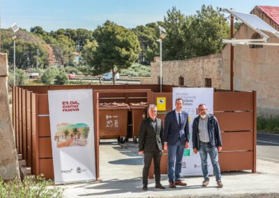 El Ayuntamiento de Elda, a través de la Concejalía de Espacio Público e Inversiones, y la empresa adjudicataria del contrato de limpieza y RSU, Fobesa, han presentado esta mañana las nuevas áreas de aportación para residuos situadas en el extrarradio de la ciudad.