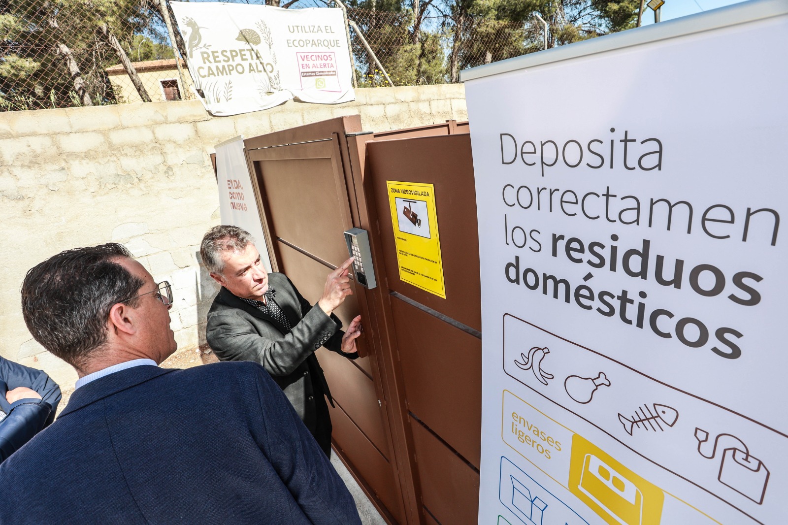 El alcalde de Elda, Rubén Alfaro, acompañado por el concejal de Espacio Público e Inversiones, José Antonio Amat, y el director general de Fobesa, Juan Pablo Mateo, han detallado el funcionamiento de estos nuevos espacios, cuyo objetivo “es centralizar la deposición de los residuos en las zonas del extrarradio de la ciudad para evitar los vertidos incontrolados que afectan durante década al medio ambiente”, tal y como ha señalado el primer edil de la ciudad.