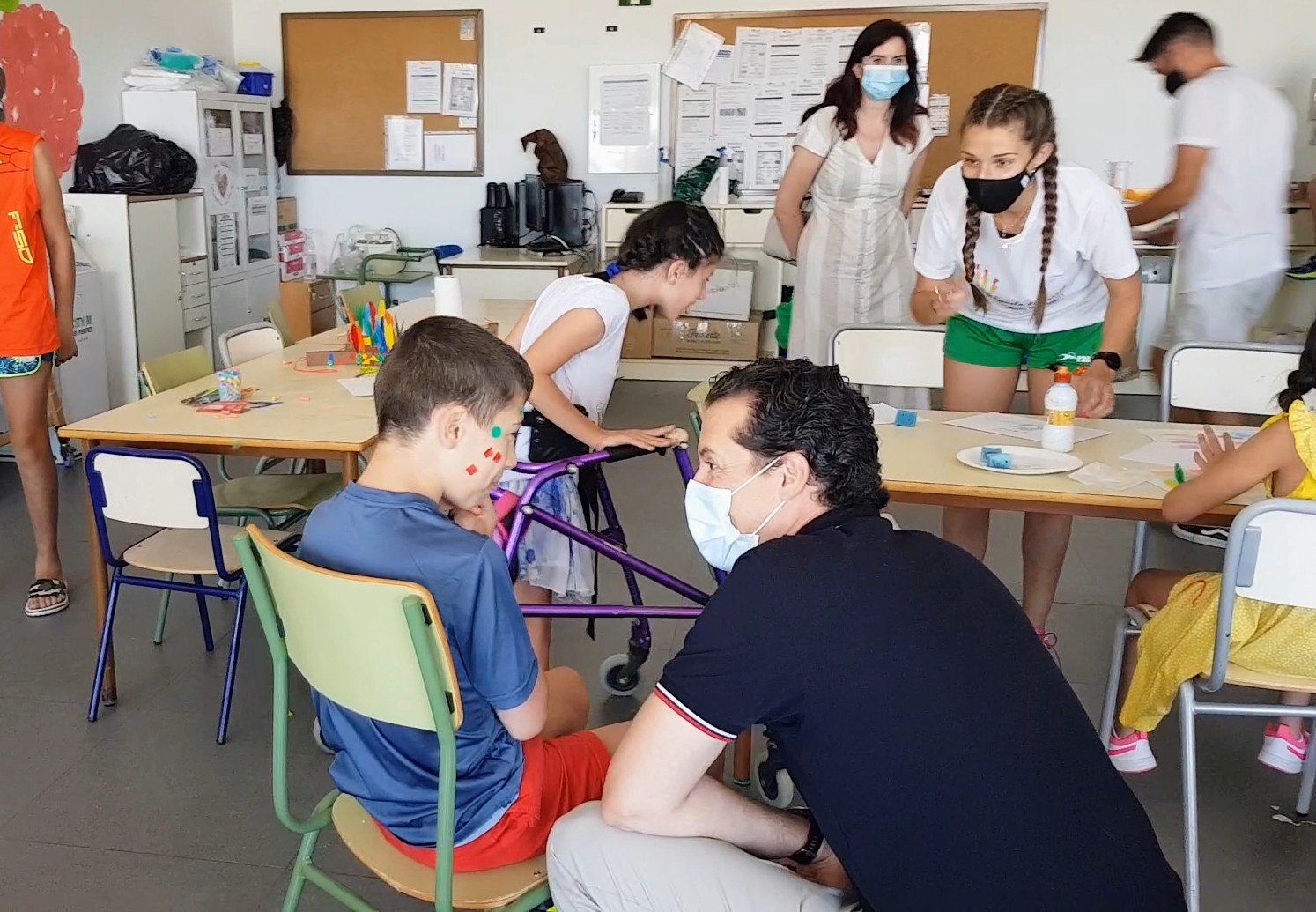 El alcalde Rubén Alfaro, acompañado de la edil de Bienestar Social, Alba García, ha visitado a los alumnos y alumnas que participan en diferentes actividades con monitoras y monitores especializados