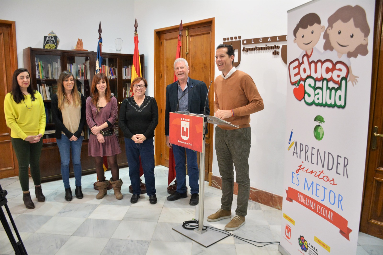 El alcalde de Elda, Rubén Alfaro, junto con la concejala de Salud, Nieves López y miembros de la Asociación de Diabéticos de Elda, ha presentado el programa Educa Salud cuyo objetivo es formar e informar tanto a familias, alumnos y alumnas, como a profesores y profesoras, sobre la enfermedad de la diabetes, además de darle visibilidad.