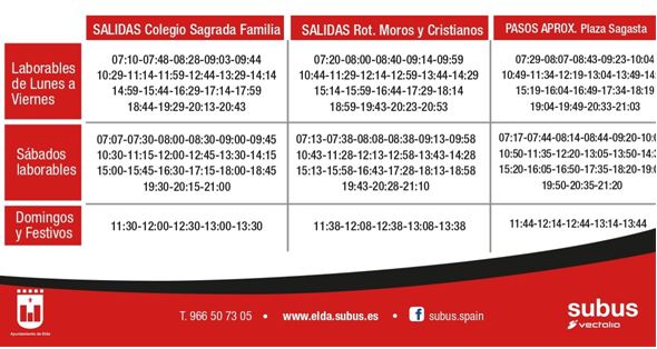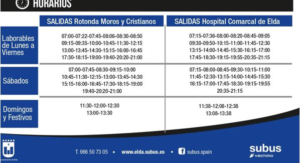 Toda la información relativa a los horarios de las dos líneas están disponibles en la web www.elda.vectalia.es