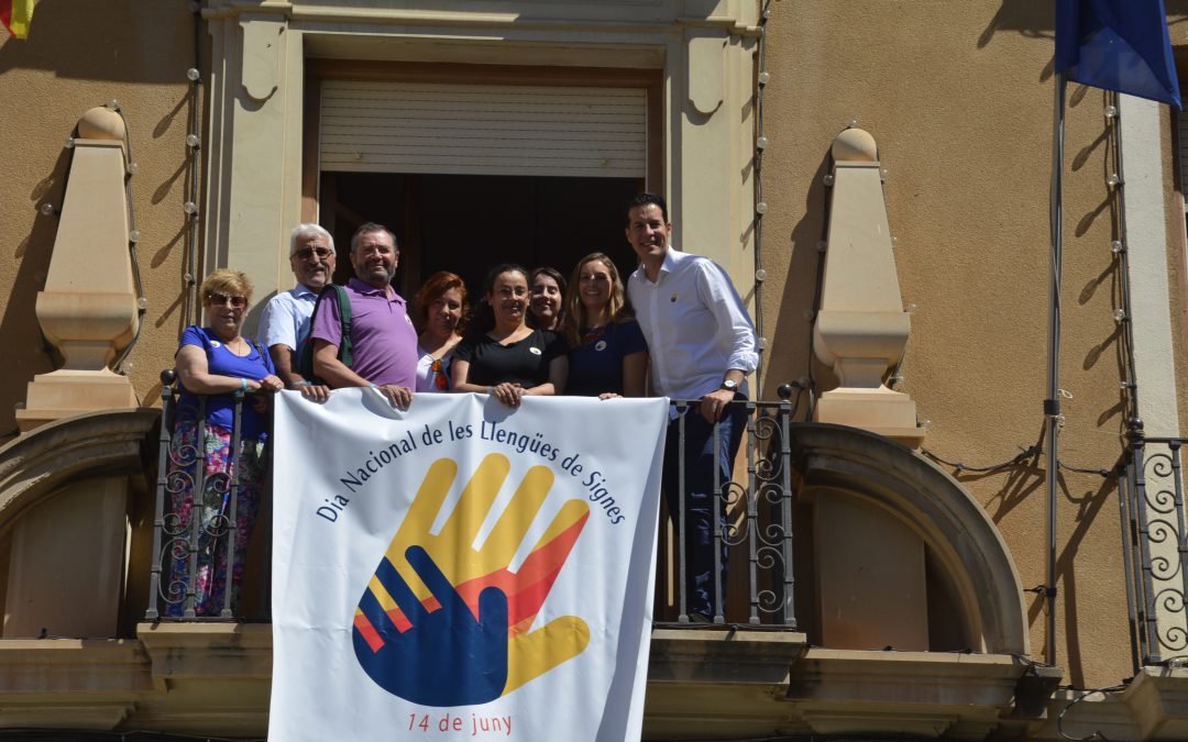 Con motivo de la celebración del Día Nacional de las Lenguas de Signos, que tendrá lugar el próximo 14 de junio, el Ayuntamiento de Elda, junto con la Federación de Personas Sordas de la Comunidad Valenciana, ha desplegado en el balcón del Ayuntamiento una pancarta conmemorativa del día.