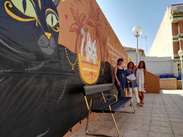Por su parte, Noba 41 ha señalado que “solía pasar por esta plaza y propuse al Ayuntamiento realizar el mural”, añadiendo que “el tema principal son los gatos porque me encantan, y además la temática egipcia encajaba bien en este barrio”.