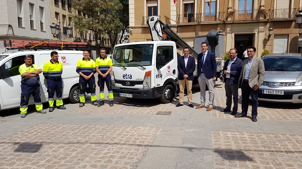 La empresa concesionaria ha contratado a personal de la localidad, concretamente 2 de los 4 operarios electricistas son de Elda, además de un encargado y una flota de vehículos formada por dos camiones con plataforma, una furgoneta y un utilitario para la inspección.
