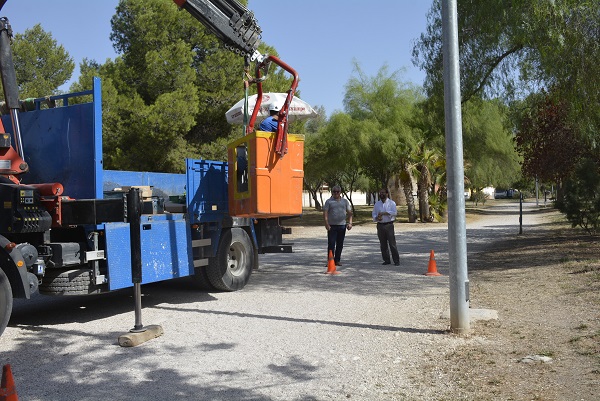 Se trata de una segunda fase, que continúa los trabajos realizados el año pasado en la zona situada desde el lago hacia el puente del Centro Excursionista y, actualmente, se está procediendo a cambiar las luces situadas desde este mismo punto, el lago, hacia el puente de Monóvar.