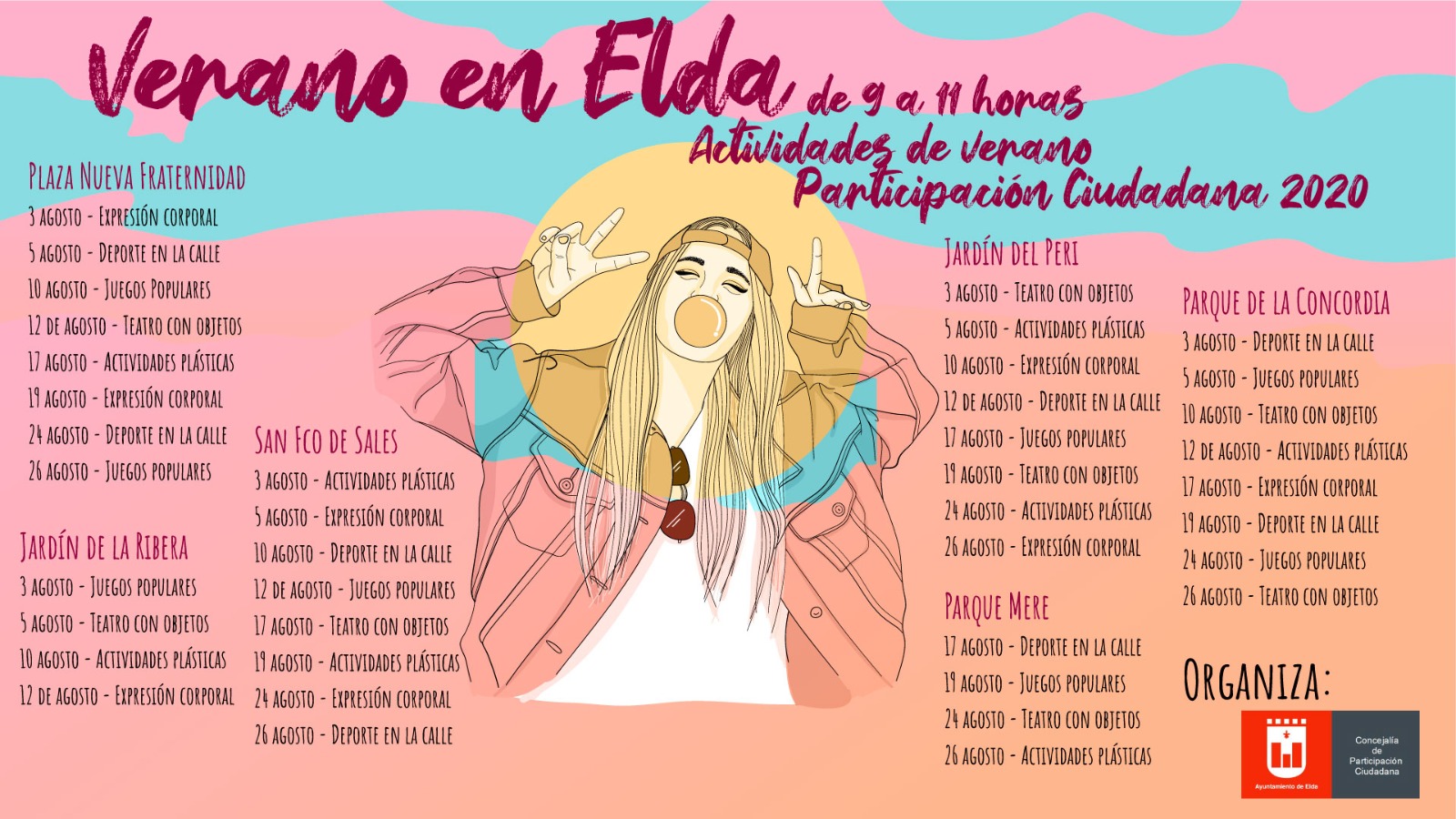 El Ayuntamiento de Elda, a través de las Concejalías de Juventud y de Participación Ciudadana, organiza el programa de actividades veraniegas ‘Verano en Elda’. Se trata de una propuesta de ocio cultural y alternativo dirigida a los más jóvenes.
