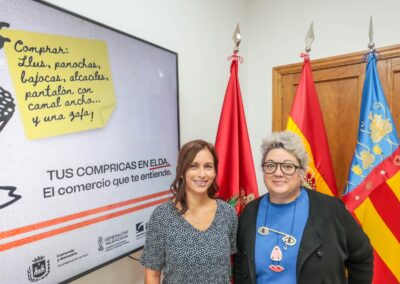 El Ayuntamiento de Elda, a través de la Concejalía de Comercio y Mercados, ha puesto en marcha la campaña promocional ‘Tus compricas en Elda. El comercio que te entiende’. La concejala del área, Silvia Ibáñez, ha explicado esta mañana que «el objetivo principal es destacar entre los consumidores y consumidoras eldenses el valor diferencial del comercio de Elda, un tejido comercial que aporta a la ciudad, con tiendas muy propias y la profesionalidad de grandes comerciantes que conocen y entienden a sus clientes mejor que nadie».