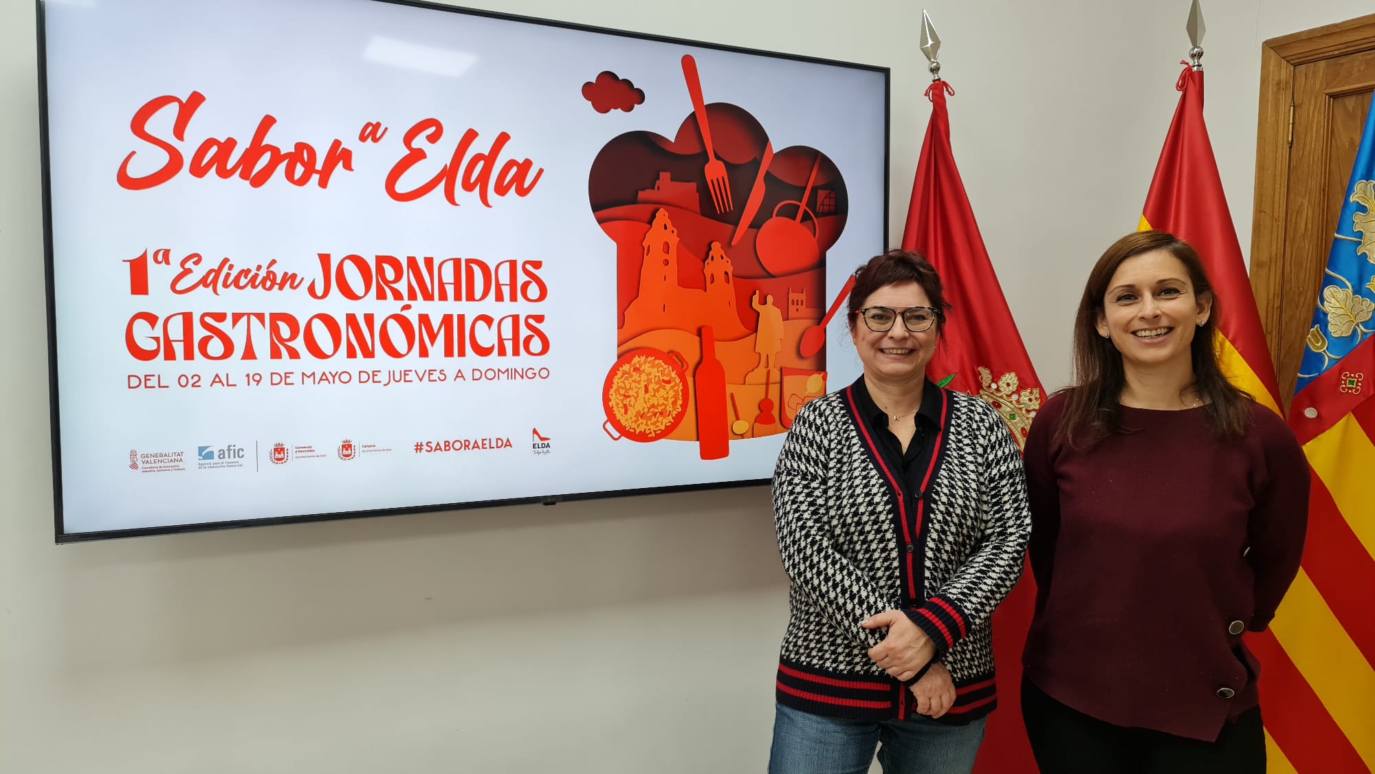 Las concejalas de Comercio y Turismo, Silvia Ibáñez, y de Turismo, Rosa Vidal, han presentado hoy la primera edición de ‘Sabor a Elda’, una muestra gastronómica que se llevará a cabo de jueves a domingo, entre el 2 y el 19 de mayo y en la que participarán bares y restaurantes de la ciudad que lo deseen.