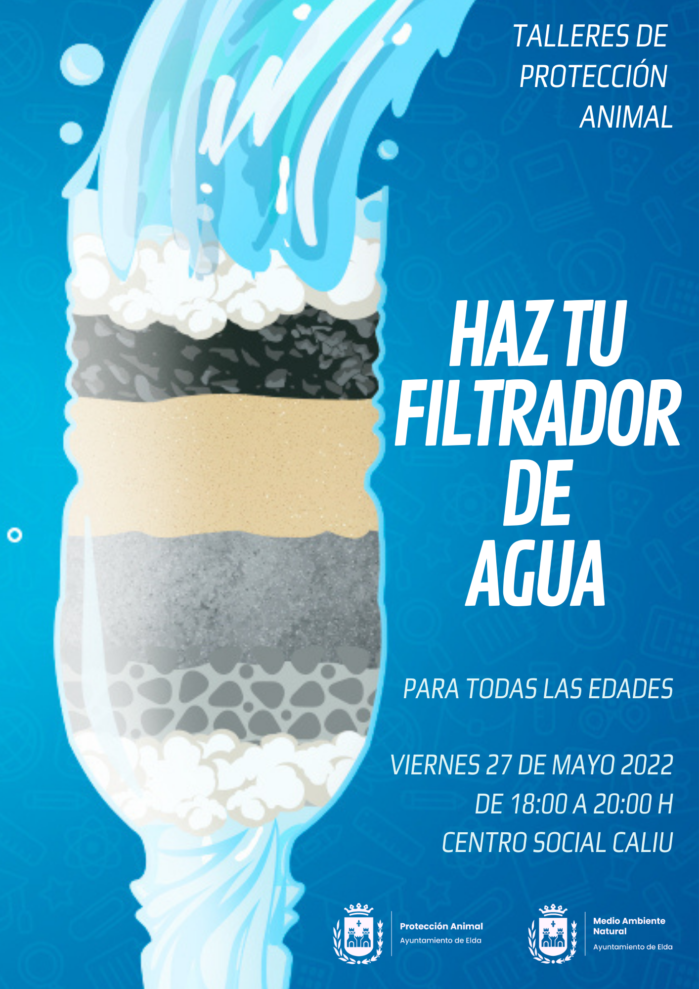 El Ayuntamiento de Elda, a través de las concejalías de Medio Ambiente y Protección Animal, organiza un taller cuyo objetivo es el cuidado del medio ambiente y la protección de la flora y la fauna del entorno eldense. El viernes 27 de mayo se llevará a cabo el primer taller enfocado a la filtración del agua.