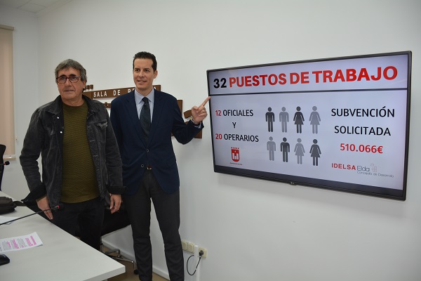 El alcalde, Rubén Alfaro y el concejal de Desarrollo Económico y Fomento del Empleo, Vicente Deltell, han dado a conocer hoy la solicitud al Servicio Valenciano de Empleo y Formación (Servef) del programa EMPUJU 2018 al que el Ayuntamiento de Elda ha presentado una solicitud de subvención de 510.066,24 €, para la contratación de 32 jóvenes, 12 oficiales y 20 operarios.