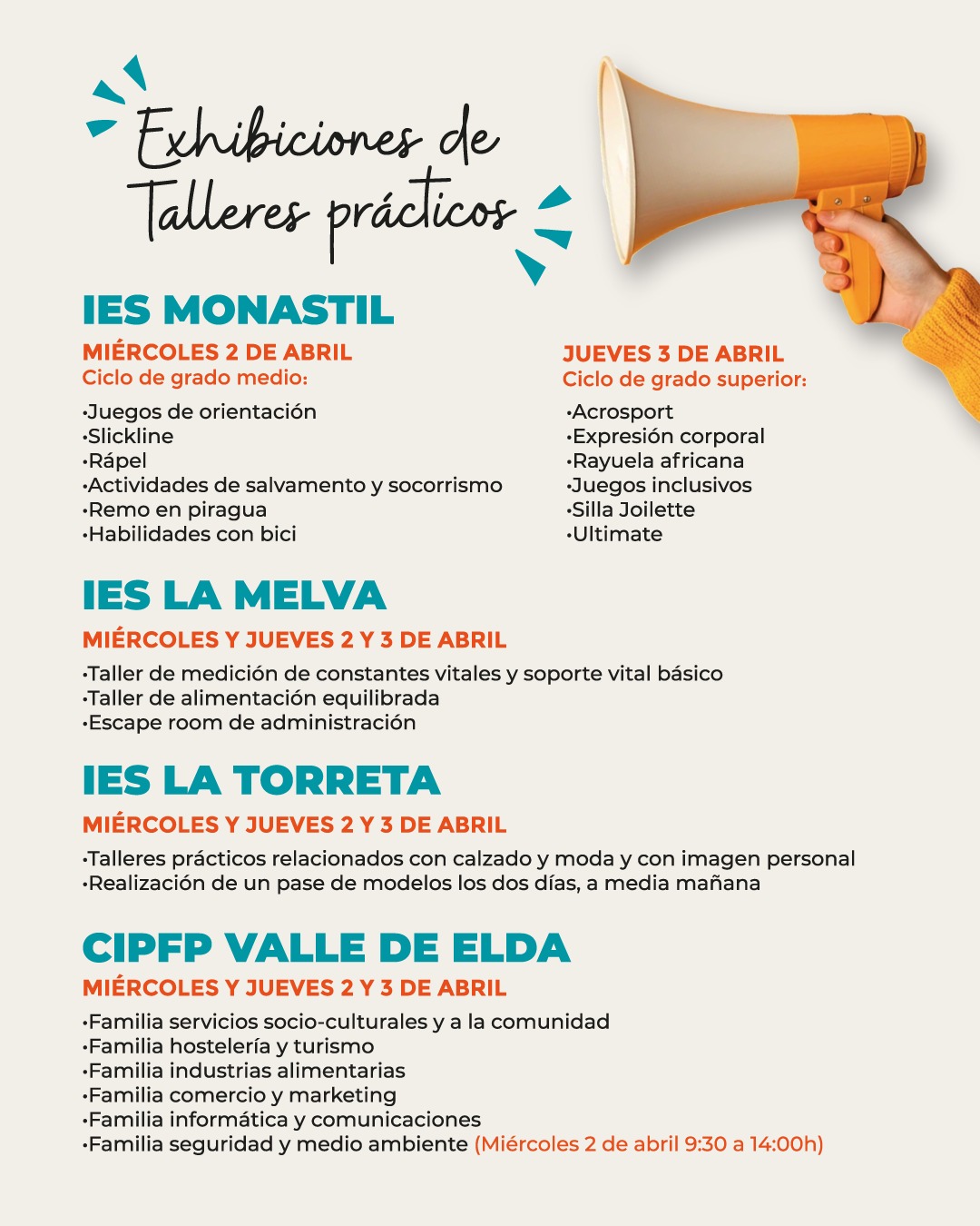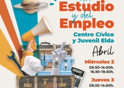 Las actividades y talleres se realizarán en el Centro Cívico y Juvenil y en la Plaza de la Ficia y contarán con la participación de más de 40 entidades y de los cuatro centros eldenses que imparten FP