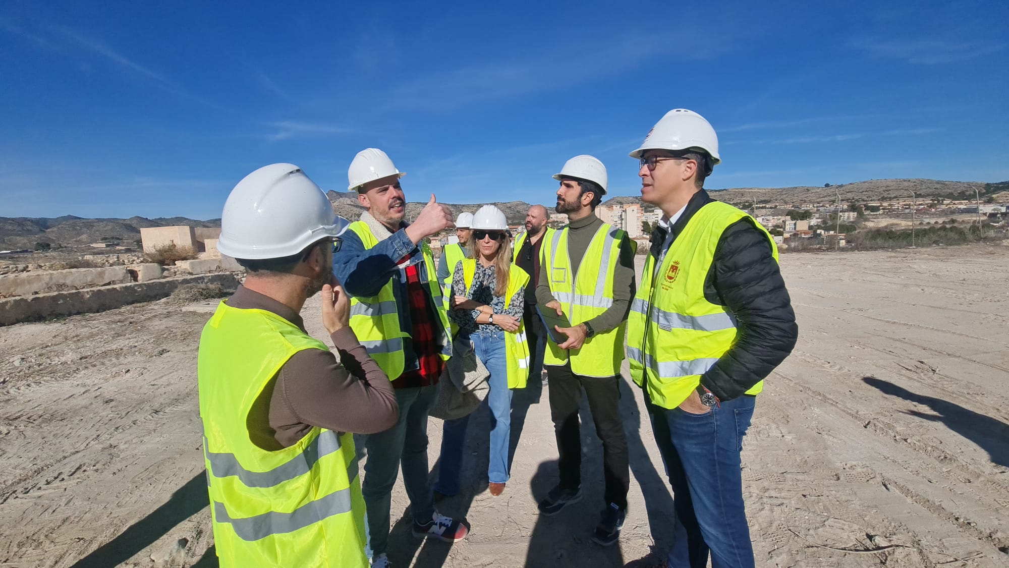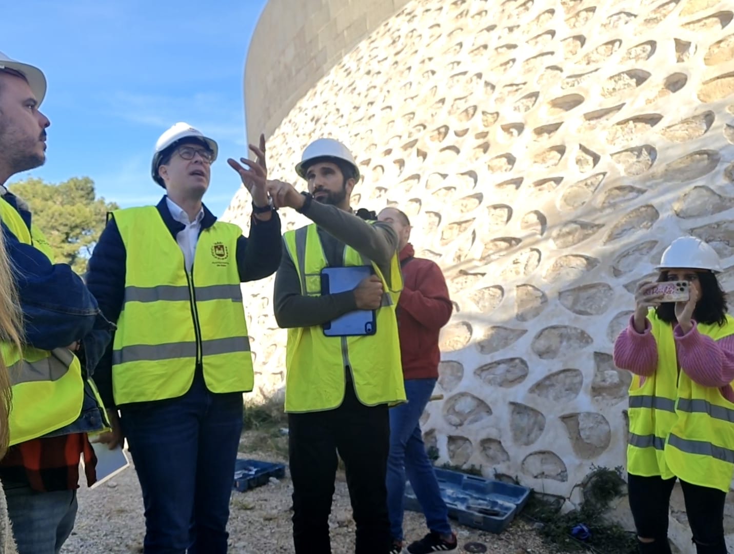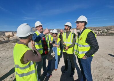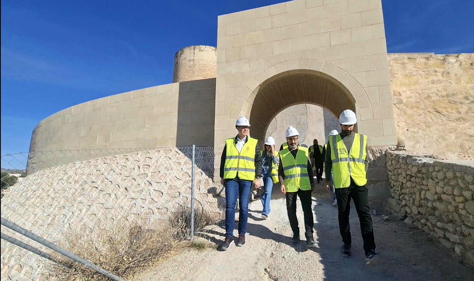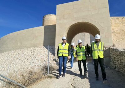 El Castillo-Palacio de Elda será visitable de manera permanente cuando concluyan los trabajos de restauración de la barbacana que dieron comienzo la semana pasada. El alcalde de Elda, Rubén Alfaro, acompañado por el concejal de Patrimonio Histórico, Iñaki Pérez; el arqueólogo municipal, Juan Carlos Márquez, y técnicos de la empresa adjudicataria, ha visitado esta mañana el recinto para comprobar cómo avanzan unas obras que tienen un plazo de ejecución de seis meses y cuentan cuentan con un presupuesto de 212.409 euros.