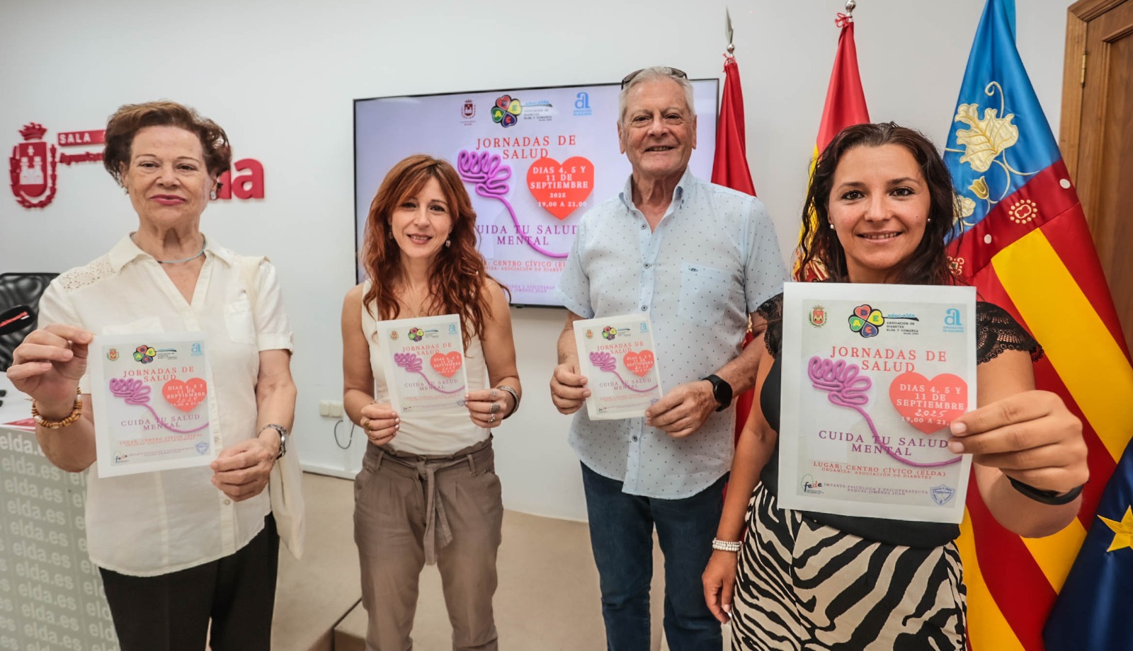 La actividad ha sido presentada esta mañana por la concejala de Salud, Elizabeth Belda; el presidente de ADEC-Elda, Fernando de la Torre; la vicepresidenta de ADEC-Elda, Antonia Botella, y la psicóloga Raquel Jiménez.