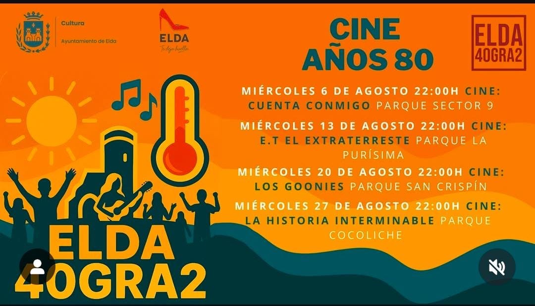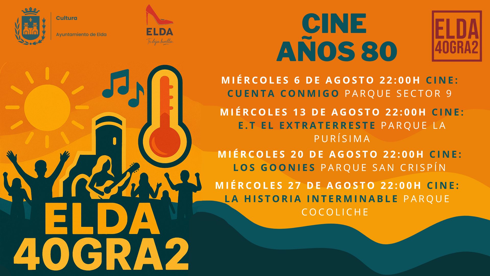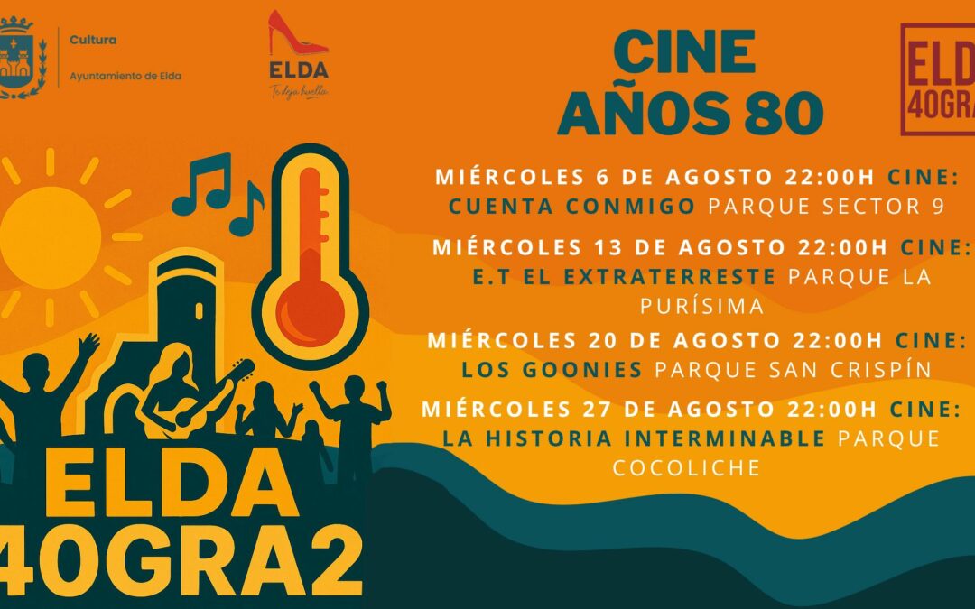 El cine de verano de Elda tendrá este año como gran protagonista a los clásicos de los años 80. Bajo el marco del programa Elda 40gra2 se proyectarán cuatro películas emblemáticas de la década que marcaron a varias generaciones y que, hoy en día, siguen tan vigentes como entonces.