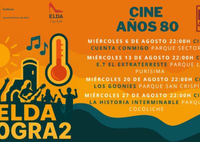 El concejal del área también ha destacado que “con esta programación el Ayuntamiento de Elda apuesta por la cultura accesible y por revivir, en clave nostálgica, algunos de los títulos más entrañables y conocidos del cine de los 80”.
