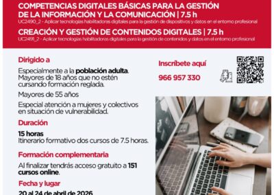 La formación, centrada en la mejora de la confianza en el entorno digital y la gestión de contenidos, tiene una duración de 15 horas y cuenta con financiación de fondos europeos ‘Next Generation’