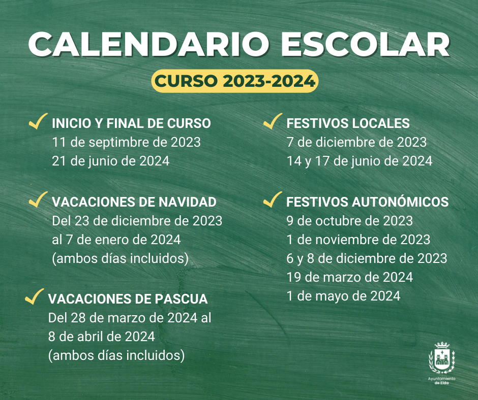 Las vacaciones de Navidad para el profesorado y el alumnado se han fijado del 23 de diciembre al viernes 7 de enero, ambos días incluidos, mientras que las de Pascua serán desde el 28 de marzo al 8 de abril de 2024, ambos inclusive.